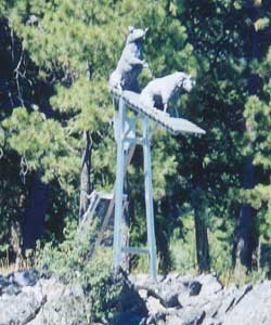 ... this sculpture portrays sheep looking to their leaders who walk the plank to their demise on the hard rocks below. The people, or should we say "sheeple," simply follow suit.(1)